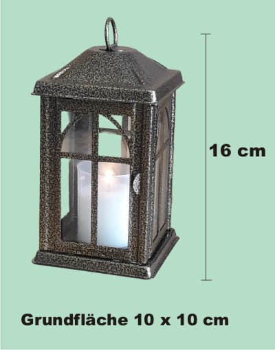 Silber antik. Für Grablichte bis 40 Stunden Brenndauer. Stahlblech pulverbeschichtet, mit Tür und Echtglas. Abbildung mit 40 Std. Grablicht weiss.