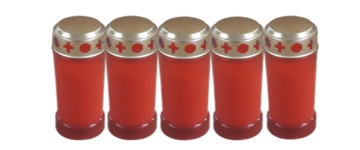 5er Pack Grablicht mit Deckel rot. Brenndauer bis zu 3 Tage.